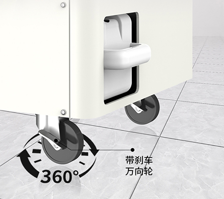機器采用了帶有剎車的萬向輪設計,方便移動到任意空間角落進行使用。